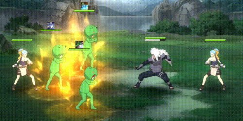 当时沦为三大国主战场的雨隐村战乱不断。某一天,三人发现在不远处雨忍村的首领山椒鱼半藏正与三位木叶忍者交战。