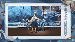 头上斜戴狐狸面具,应节抹上的朱红额纹为这副纯真稚嫩的脸庞,更增添了一分少年英气。